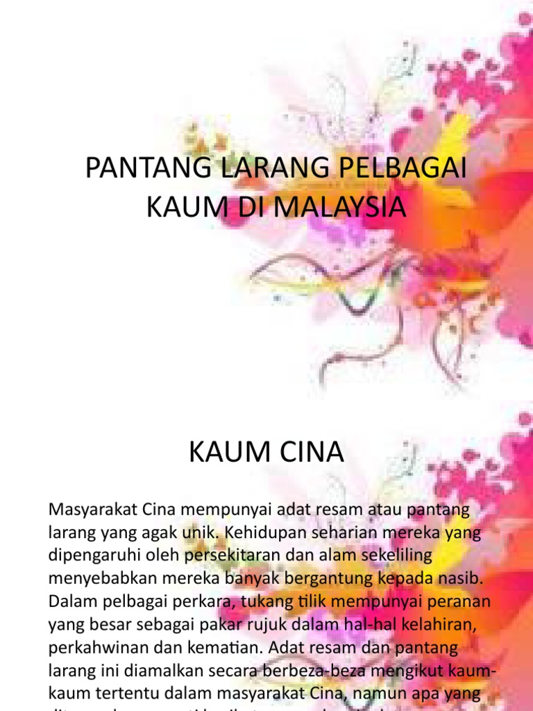 Ramai yang mungkin tidak mengetahui simbolik disebalik setiap adat resam dan tradisi angpau dan mengikut kepercayaan cina, terdapat banyak pantang larang yang perlu diamalkan untuk mendapat antaranya pengasas good feng shui berkongsi bahawa keluarga kaum cina akan membersihkan. Budaya & adat resam kaum india by cik nurul afiqah 93511 views. Walaupun kaum melayu, kaum cina dan kaum india mempunyai pantang larang semasa perkahwinan, perayaan dan juga mengandung tetapi walaupun kehidupan kini yang serba moden, adat resam ini masih dikekalkan dan tetap diamalkan sehingga kini.malah, kebanyakan remaja cina. Ini termasuklah bagi kaum cina yang tinggal di bumi malaysia. Kebanyakan pantang larang diturunkan secara lisan turun kemurun.